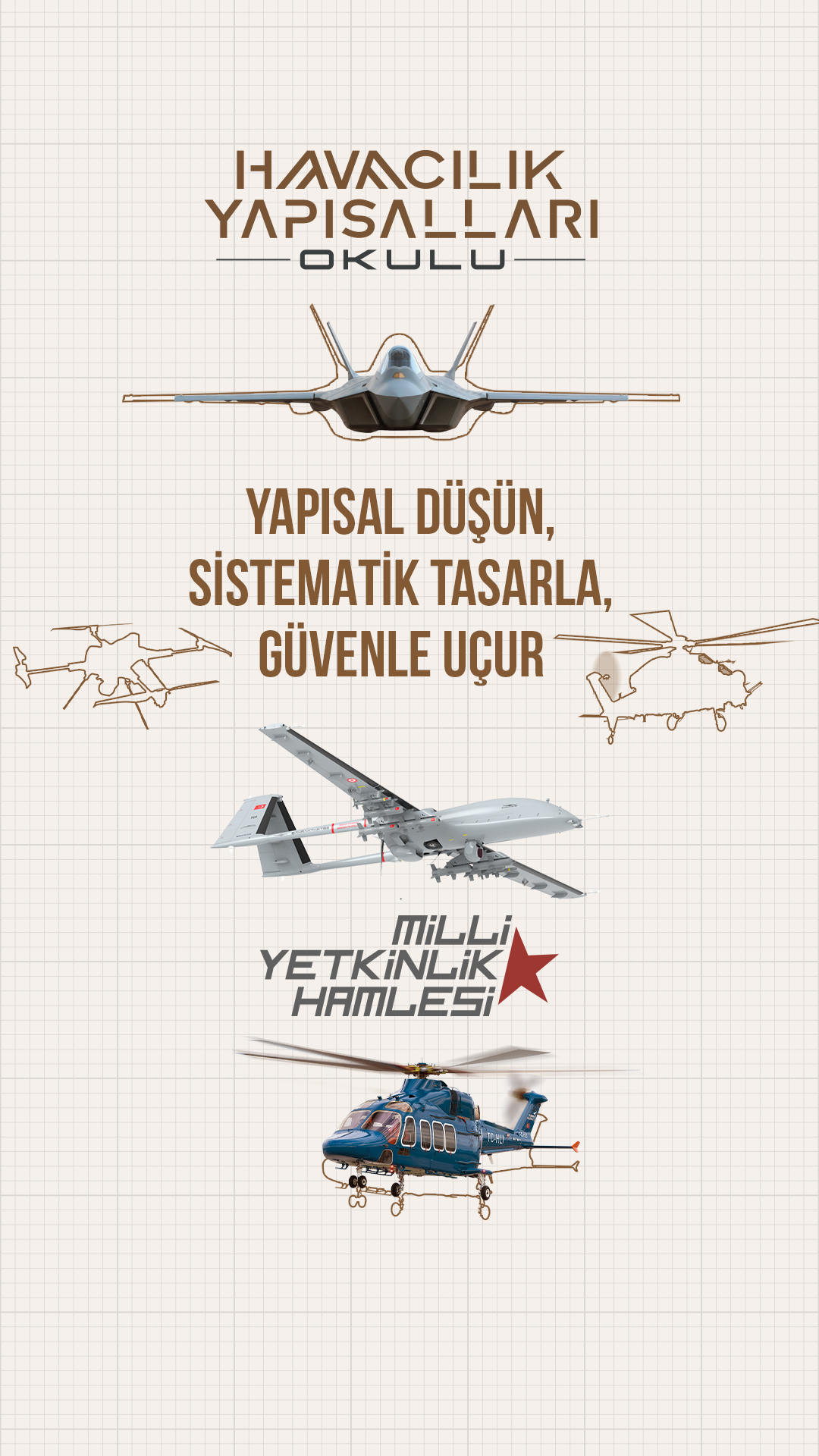 Havacılık Yapısalları Okulu’nun amacı, hava aracı yapılarının tasarım, analiz, üretim, montaj ve bakım süreçlerine bütünsel bir mühendislik bakışı kazandırmak; katılımcıların havacılık yapısal mühendisliği alanında disiplinler arası düşünme ve uygulama yetkinliği edinmelerini sağlamaktır. Program, metalik ve kompozit yapıların mühendislik prensiplerini, sertifikasyon gerekliliklerini ve üretim teknolojilerini bir araya getirerek, katılımcıların tasarımdan onarıma uzanan tüm yaşam döngüsünü yönetebilecek düzeye ulaşmasını hedefler. Bu kapsamda, güncel endüstri standartları, dijital mühendislik araçları ve vaka temelli öğrenme yöntemleriyle desteklenen eğitim modülleri aracılığıyla; sistematik düşünen, kalite odaklı, analitik ve yenilikçi mühendisler yetiştirilmesi amaçlanmaktadır.